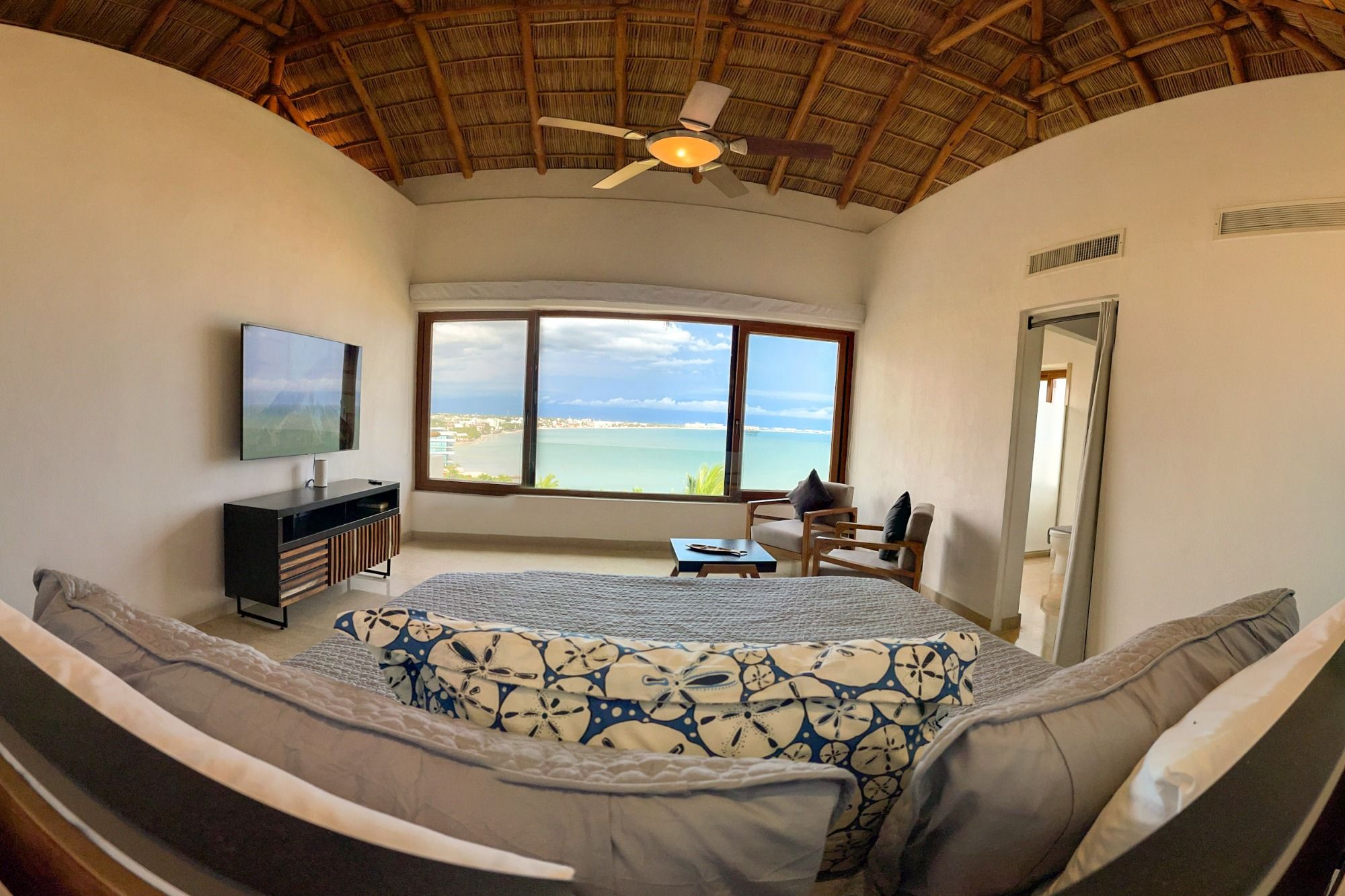 Penthouse Condo with panoramic views of Banderas Bay and soaring palapa ceilings.